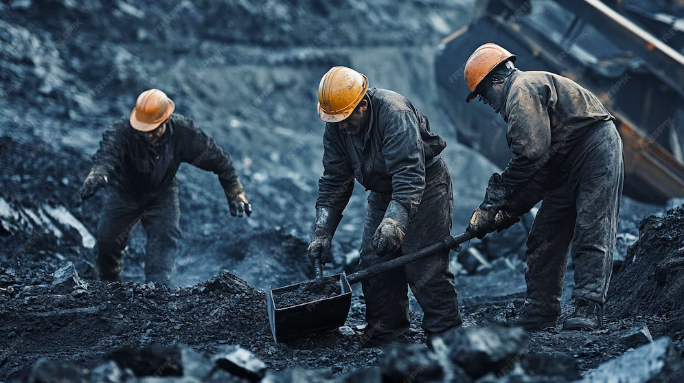 Coal miners in protective clothing and helmets work at a mining site, as Zimbabwe introduces new rules on fixed-term contracts aimed at improving job security and conditions in the mining sector, where safety risks remain high. (Image: Freepik)